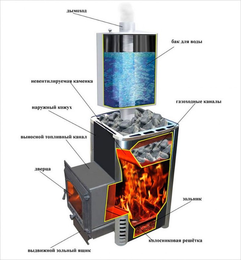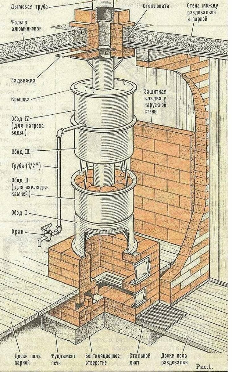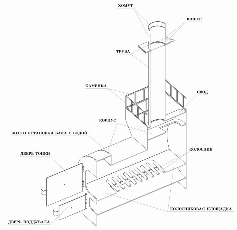 Банные печи своими руками: пошаговый алгоритм сборки из кирпича и горизонтальной трубы для дымохода печки с баком для воды