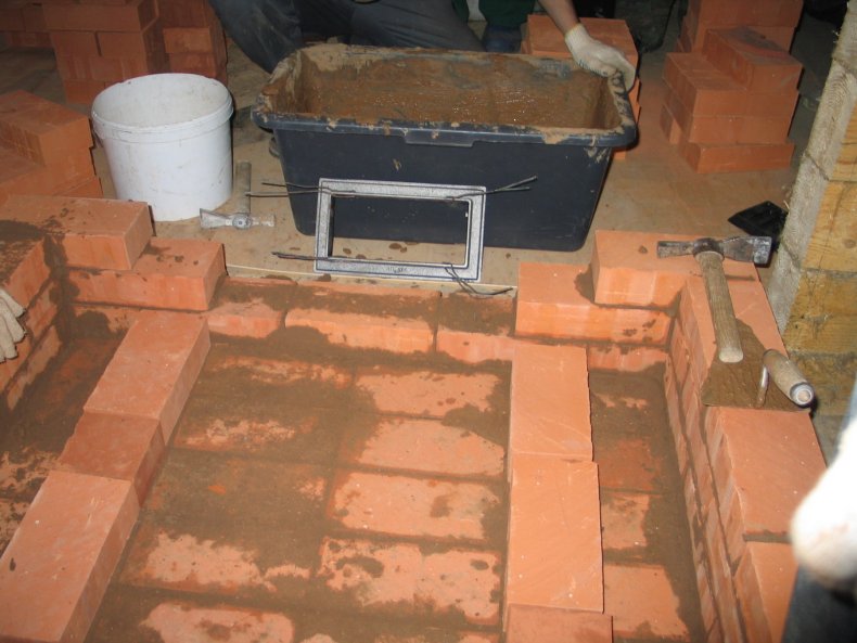 Так как очень важно, чтобы все стены были ровными, не было щелей и зазоров, рекомендуется сложить кирпичи сначала всухую.