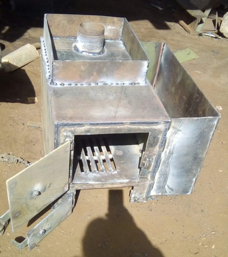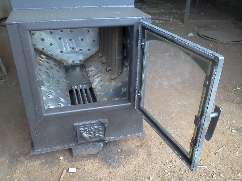 - При необходимости его можно будет доставать, чтобы вычищать печь. В 50мм от края по диагонали от колосника нужно вырезать отверстие для дымохода.