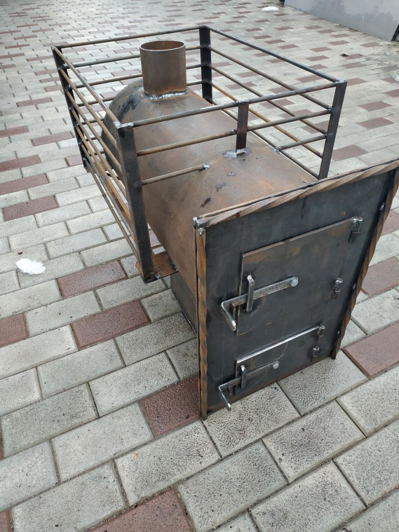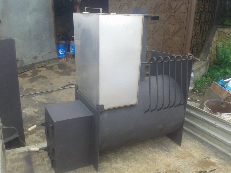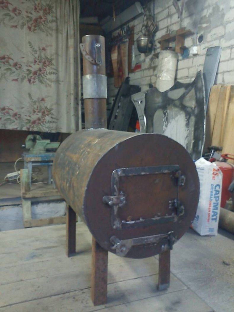 - Трубу, которая будет использована горизонтально, нужно взять 0.7 м в длину и внешним диаметром 0.5 м. Внутри размещается чугунный колосник.