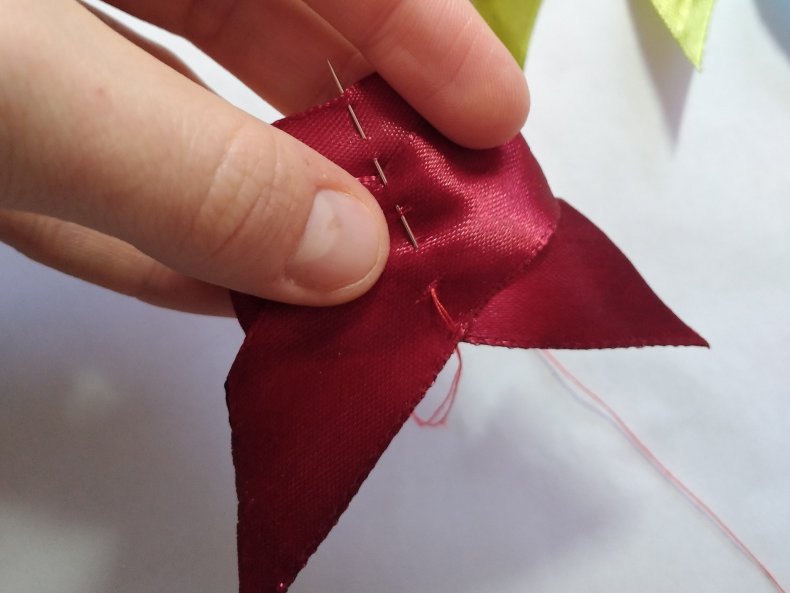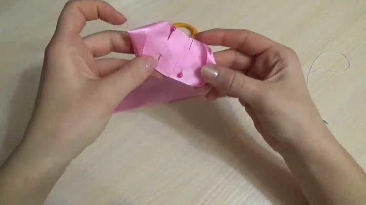 - Переворачиваем все и при помощи иглы и нитки скрепляем оба конца, как на фото выше.