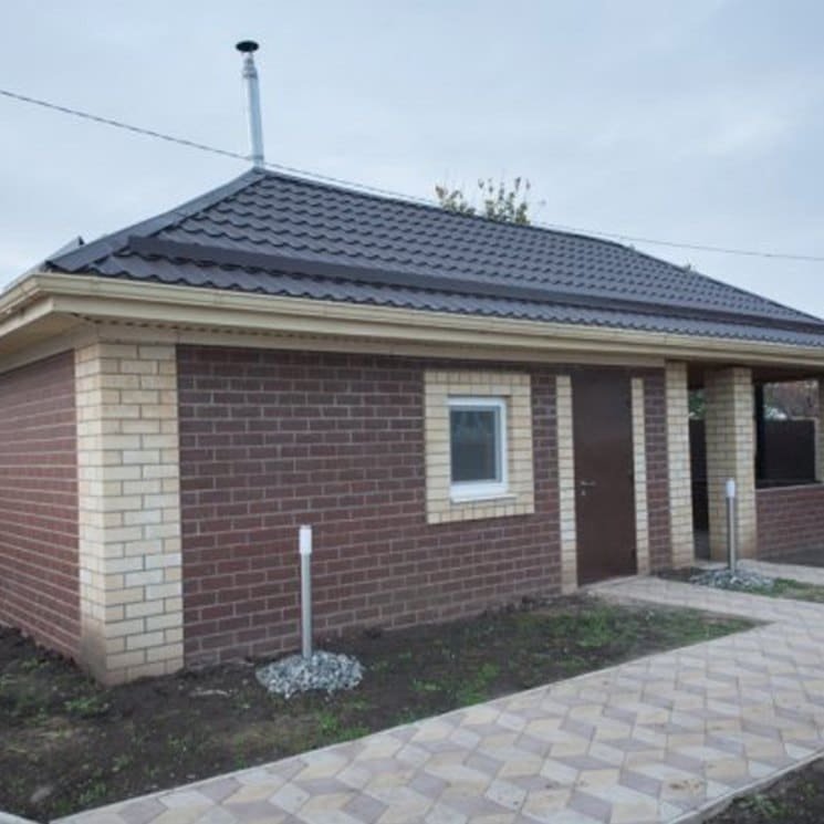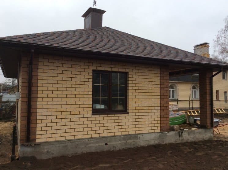 - Другой распространенный вариант для возведения стен бани – это кирпич. Кирпич хорош тем, что он пожаробезопасен и имеет долгий эксплуатационный срок службы.