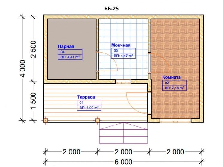 В ней будет минимум комнат, к которым относятся парилка и предбанник. А также будет отсутствовать водопровод.
