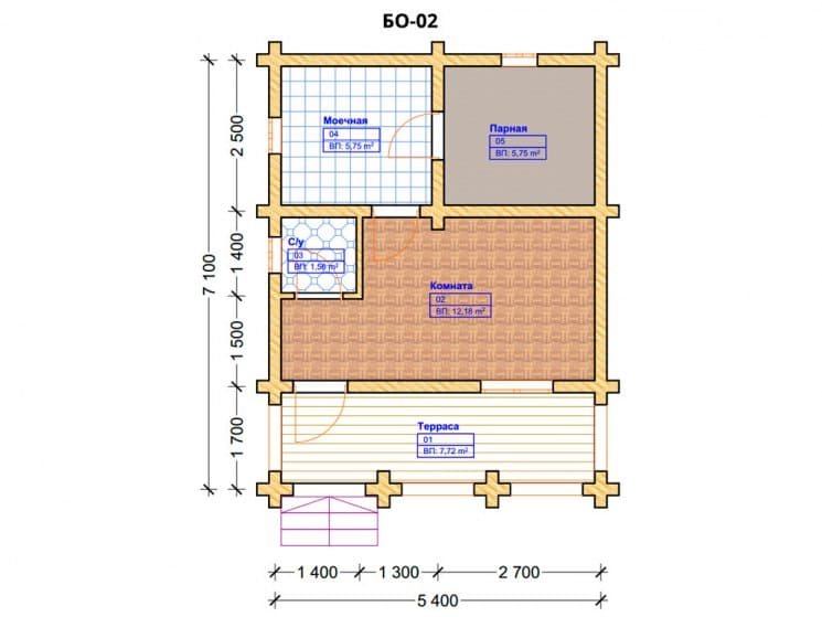 Так как большая часть людей имеют дачные участки малой площади, то постройка большой бани со множеством отдельных помещений нецелесообразна и невозможна. Поэтому рассмотрим вариант компактной бани.