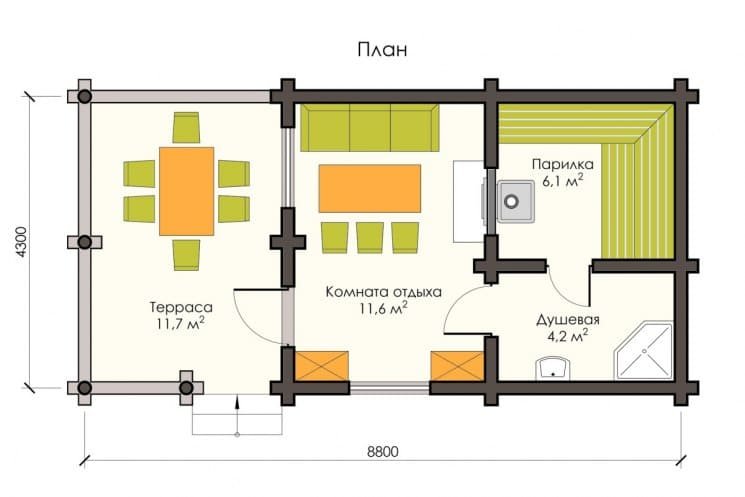 - Помимо парилки должны быть в будущей постройке комната отдыха, предбанник и душевая.