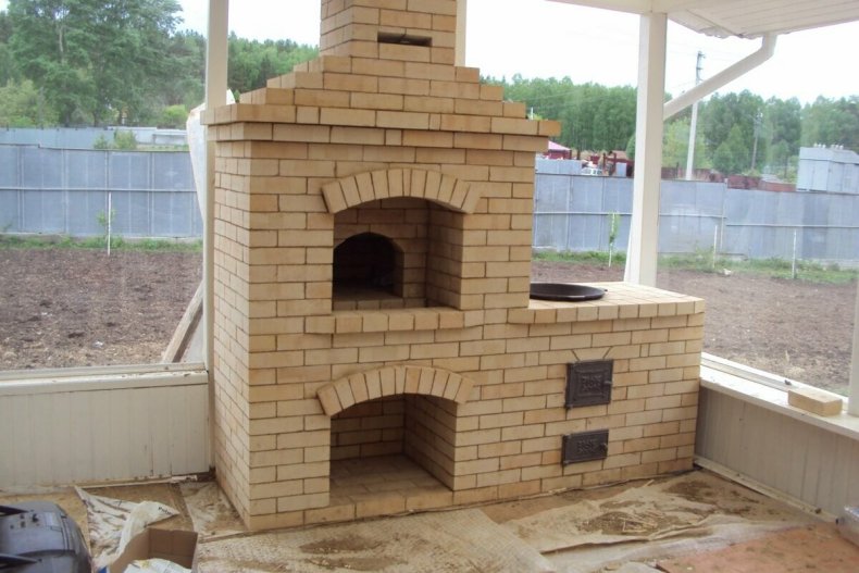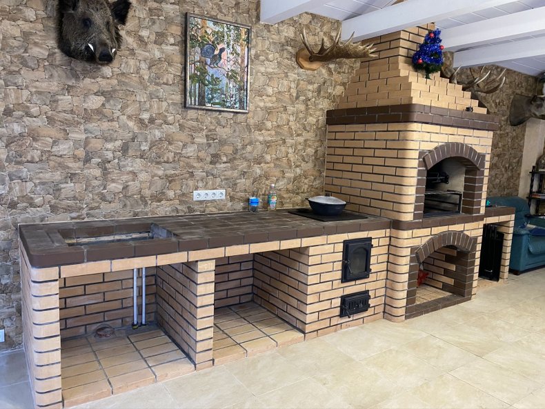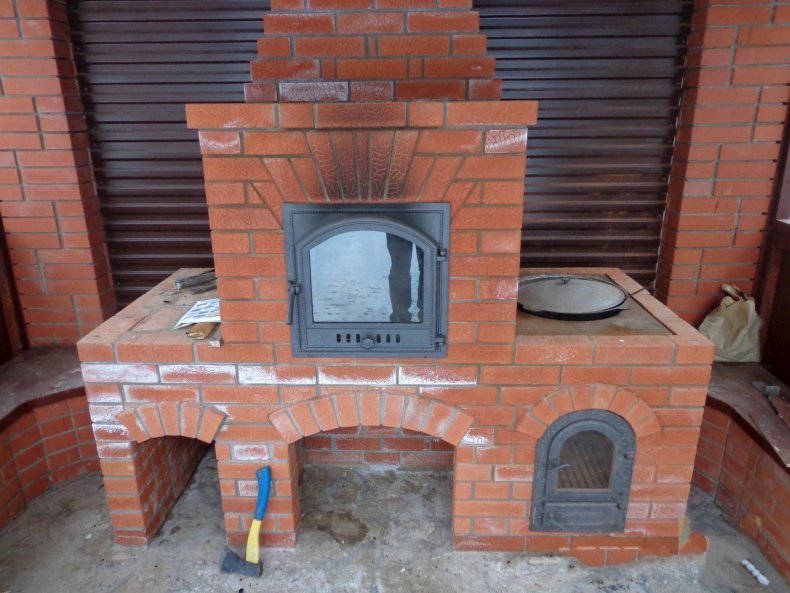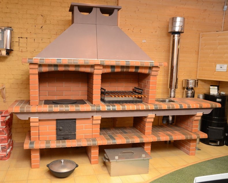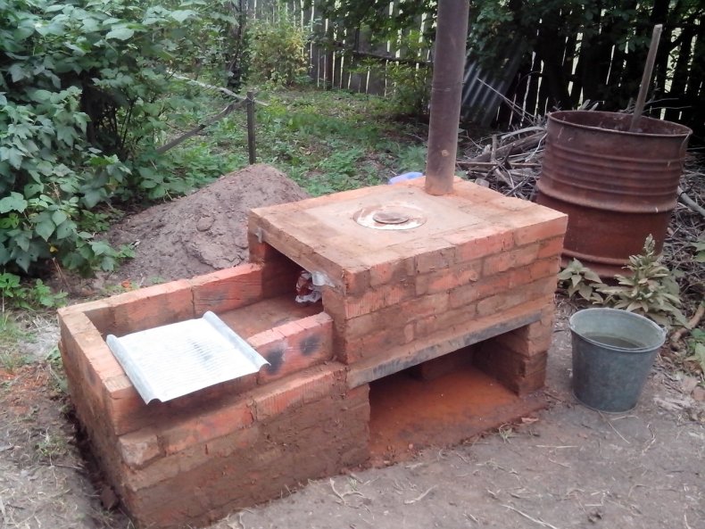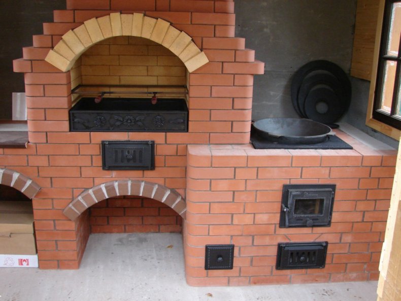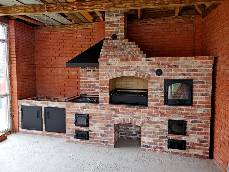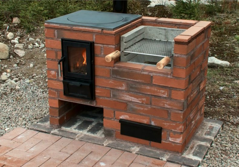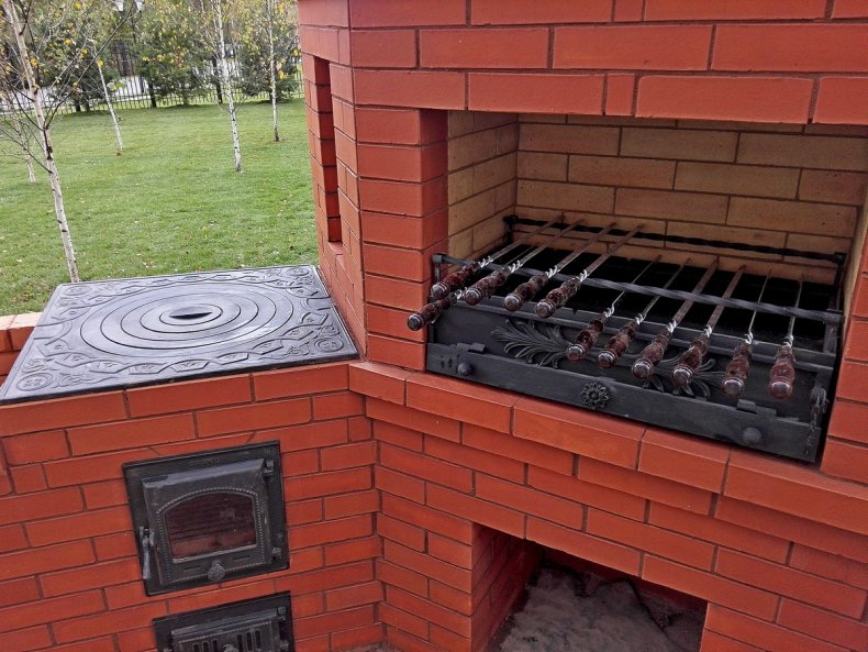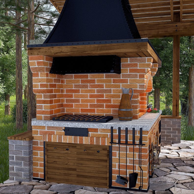 Можно выполнить пристройку из кирпича, в которой разместят решетки и другие инструменты/вещи, необходимые для реализации поставленных задач.