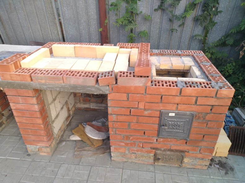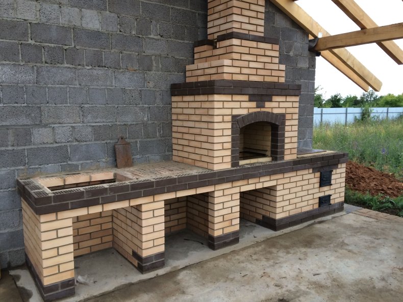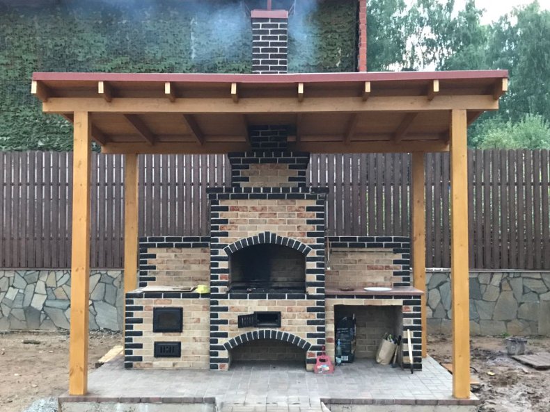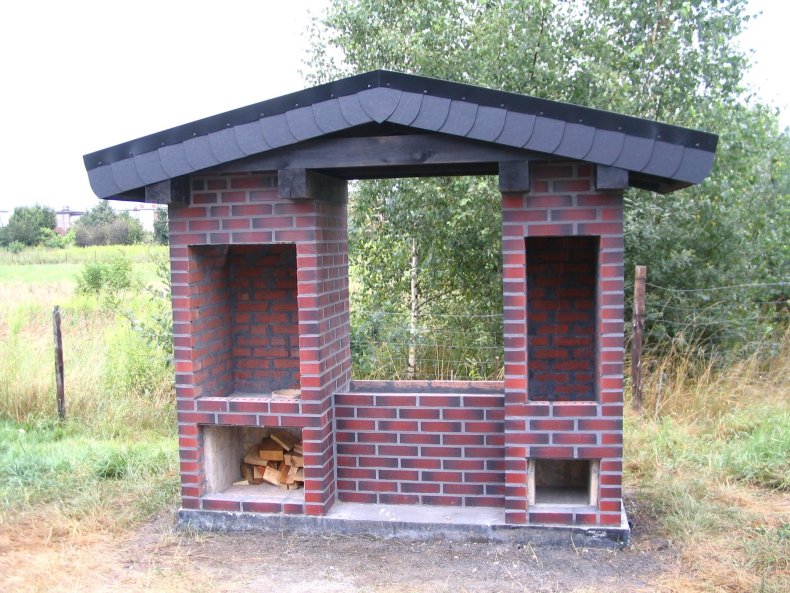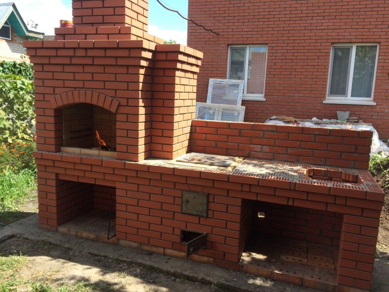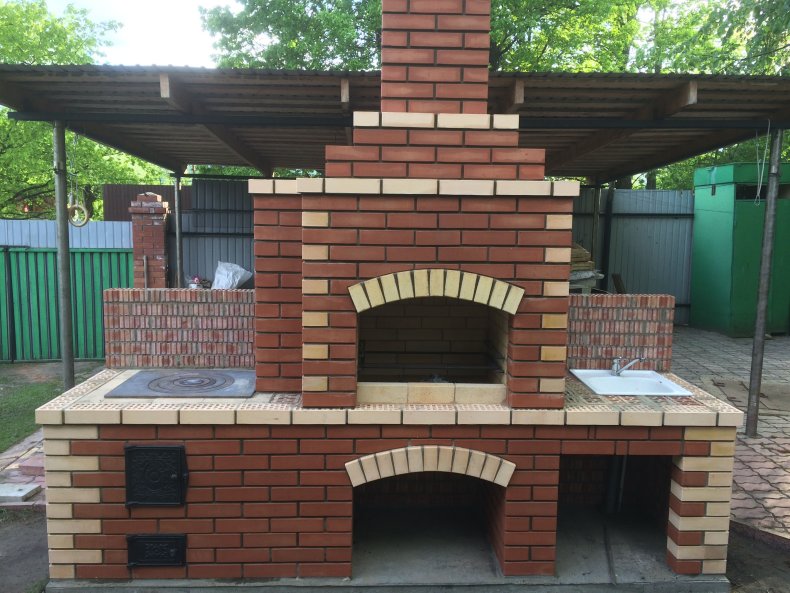 Барбекю из кирпича своими руками: от выбора места и строительства до заливки фундамента, кладки кирпича, отделки, возведения навеса