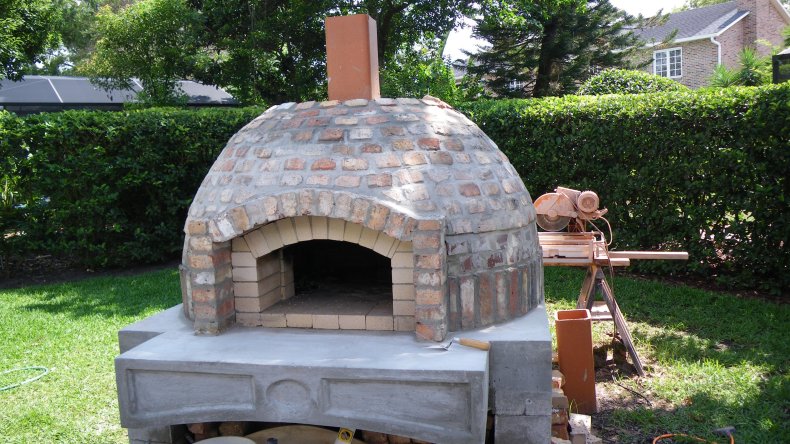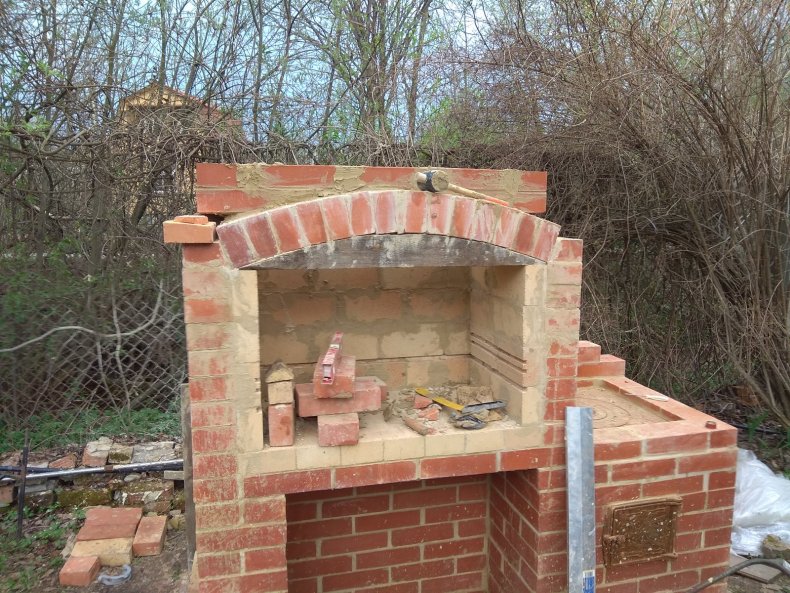 К вершине должно получиться небольшое отверстие. Обычно оставляют его по диаметру таким, чтобы поместился 1 полноценный кирпич. Этого вполне хватит для того, чтобы дым выходил вверх, не распространяясь во все стороны.