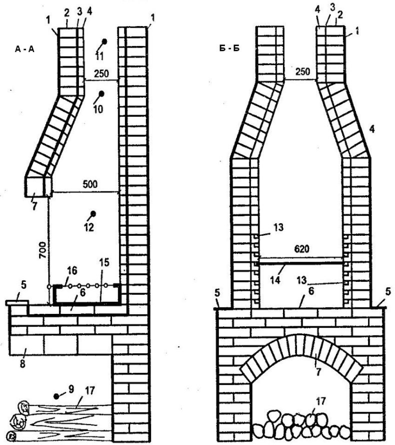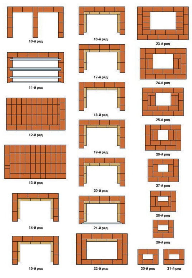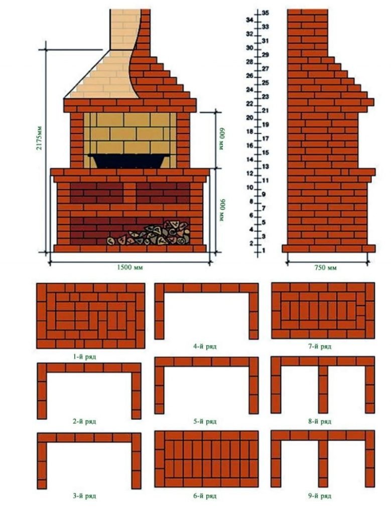 Для начала нужно выполнить чертежи. Стоит учесть важный момент: на 2-3 ярусах должны быть немного выступающие вовнутрь кирпичи.