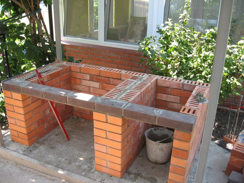 - Нужно рядом с мангалом выстроить стенку, которая будет на 1-2 кирпича ниже самой конструкции.