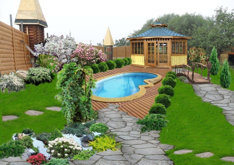 Сперва, надо понять какая территория принадлежит вашему участку и как правильно организовать пространство, чтобы всё выглядело просторно и не загружено.