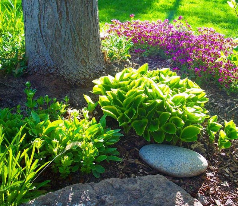 - Чтобы растения не разрастались и не теснились другими цветами, лучше всего проложить небольшие перегородки из камня.