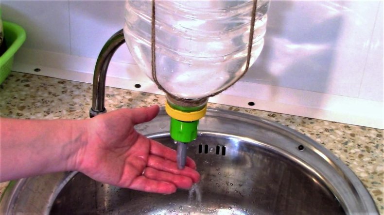 - Закрутить крышку, снабженную клапаном на горлышке. Это устройство будет выполнять функцию крана.