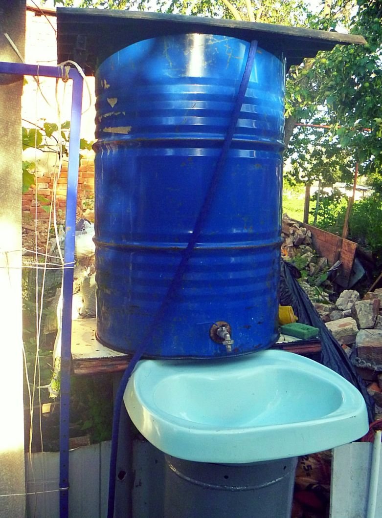 Как правило, состоит из обычной мойки и любой емкости, куда можно залить воду для использования.