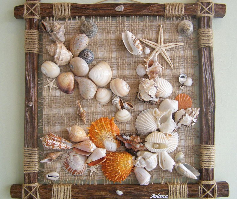 В ванной комнате красивее всего будет смотреться что-то из ракушек или гальки.