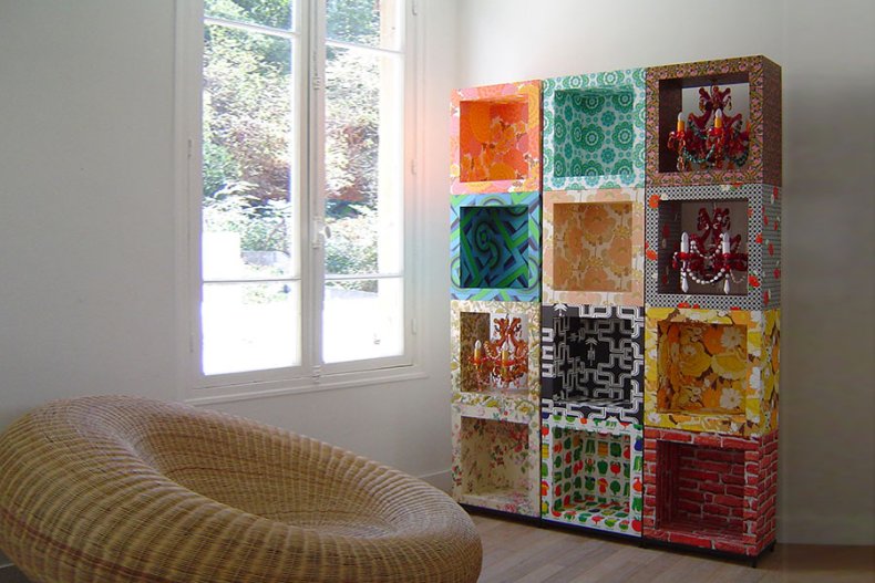 На этот стеллаж вы можете поставить книжки, необычные корзинки, кашпо с цветочками, удивительные картины и фотографии в рамках. Сюда можно размещать и другие поделки, которые вы смастерите своими руками.