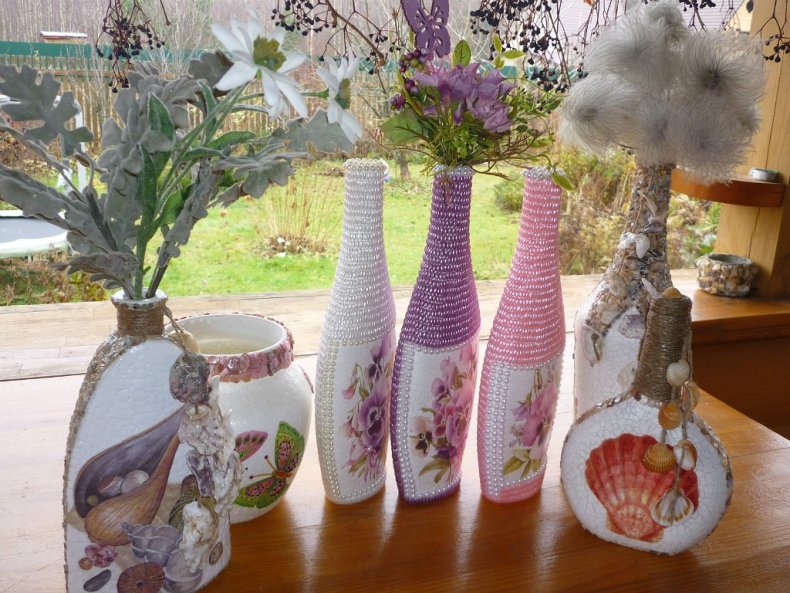 Собственноручные декорированные элементы, сделанные из подручного материала, способны внести в интерьер изюминку, помогут устаревшим предметам обрести вторую жизнь.