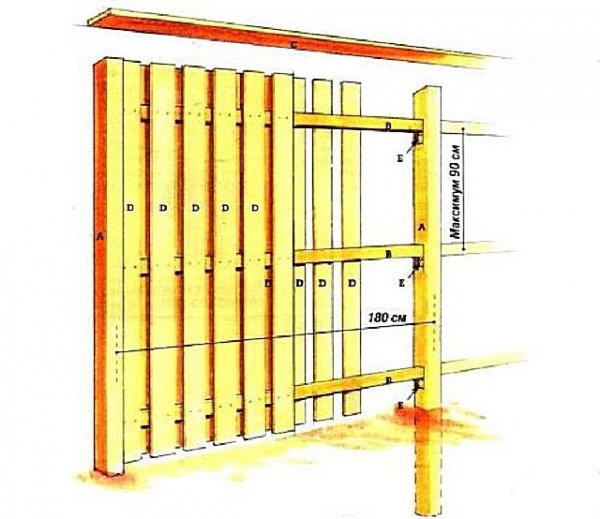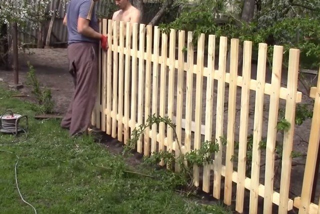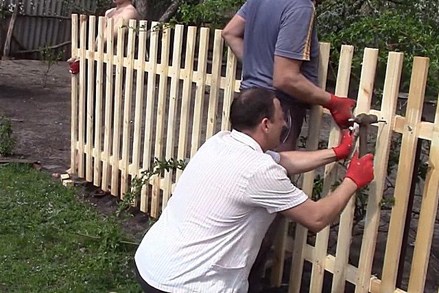 Теперь самое интересное! Разложите доски забора вдоль забора так же, как и параллельные доски, и начинайте прибивать их.