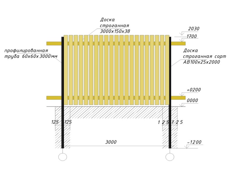 Основываясь на план забора, закупите пиломатериалы, бетон и крепежные материалы.