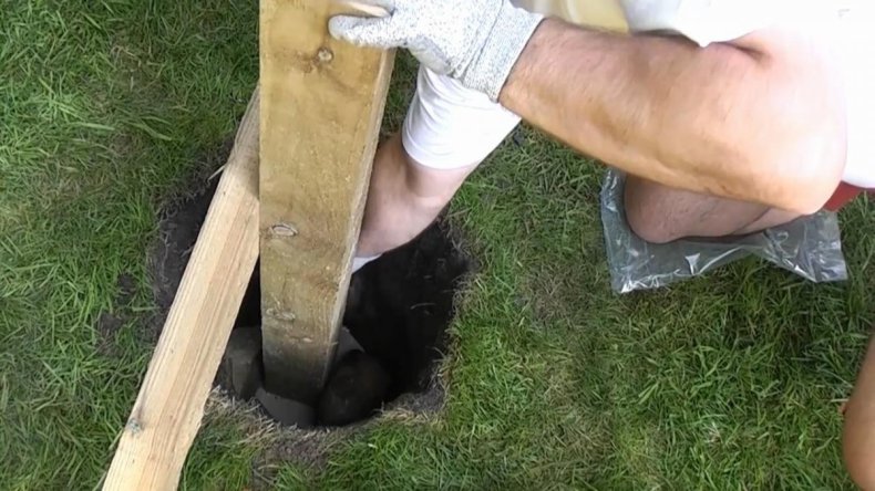 - Если вы попытаетесь утрамбовать сразу, это приведет к смещению столба в сторону. Труба длиной 3/4 дюйма – отличный инструмент для утрамбовки.