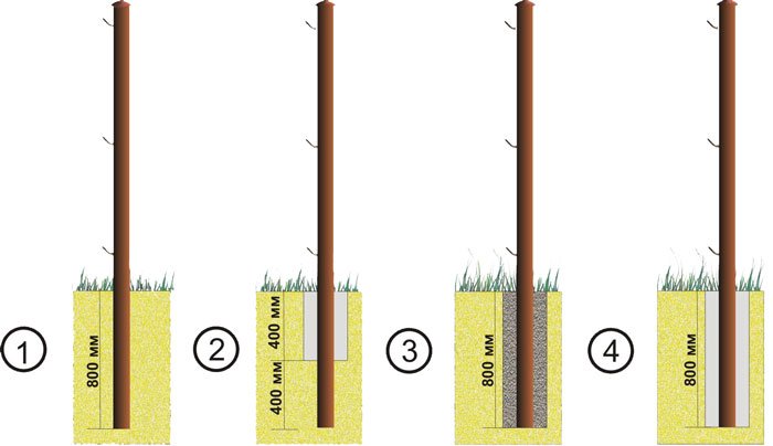 - Если камень находится на глубине пятидесяти сантиметров или более, просто отрежьте конец столба (только для промежуточных столбов).