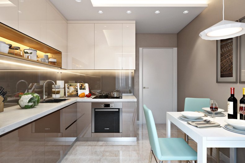 - Если кухня маленькая, присмотритесь к встроенной технике. Это значительно сэкономит пространство.