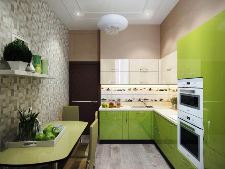 Выбирая цветовую гамму ориентируйтесь не только на ваши личные предпочтения, но и на освещение и размеры. Если у Вас узкая кухня и плохое освещение, то следует выбирать светлые оттенки и обилие освещения.