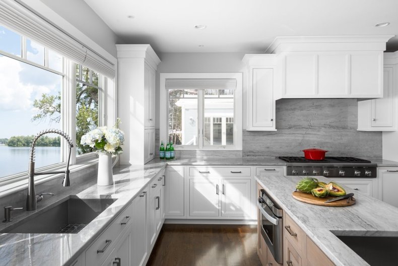 Не забудьте про освещение. Можно разместить подсветку в тех местах, где чаще всего находитесь. Например, над плиточной панелью, столешницей и раковиной.