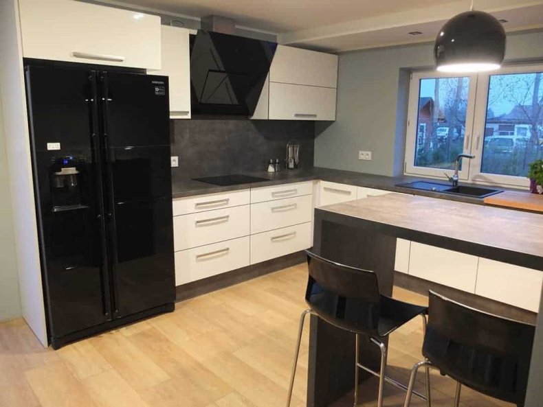 - Уделите особое внимание холодильнику, стиральной или посудомоечной машине, чтобы при эксплуатации не приходилось испытывать неудобства. Также не забудьте про духовой шкаф и плиточную панель. При установке духового шкафа подберите место, чтобы без труда можно было заглянуть внутрь. А при выборе места под плиточную панель, убедитесь, что кастрюли без труда помещаются и ничего не мешает по бокам.
