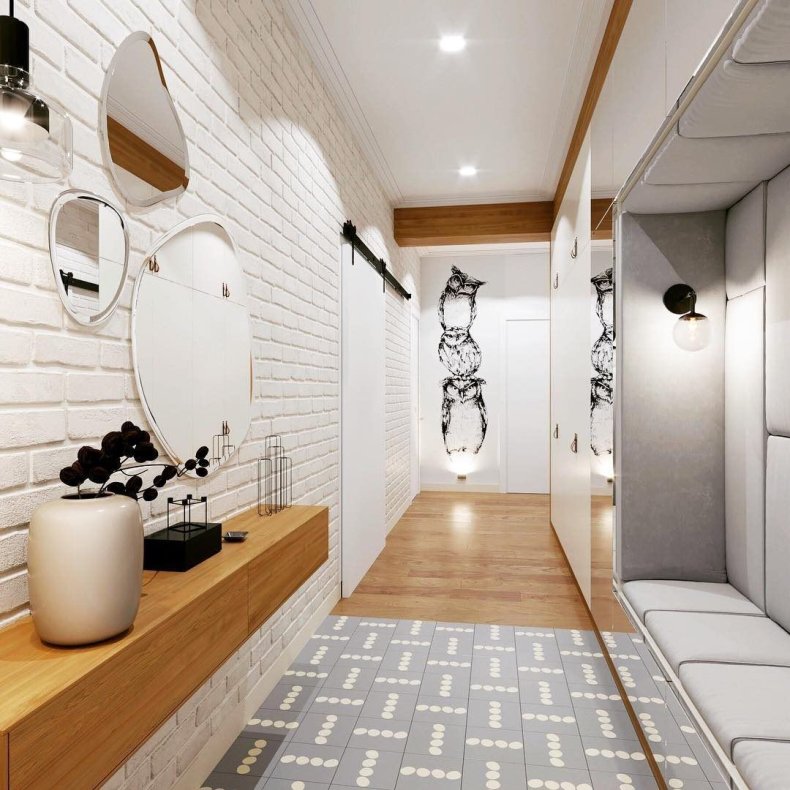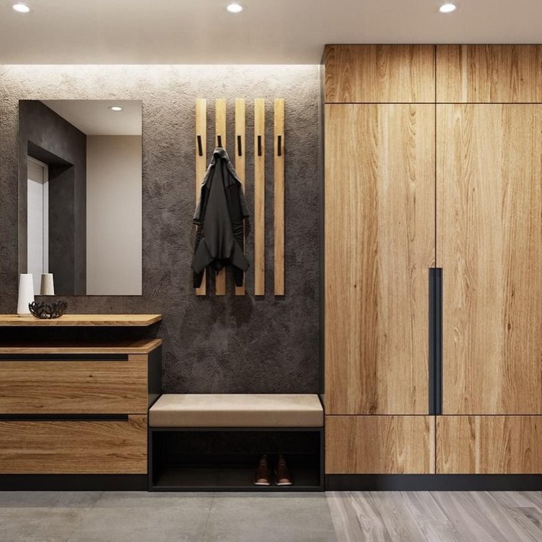 Для стен правильнее всего выбирать отделку, стойкую к износу, поскольку в прихожей с ними приходится много соприкасаться.