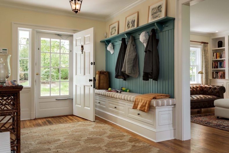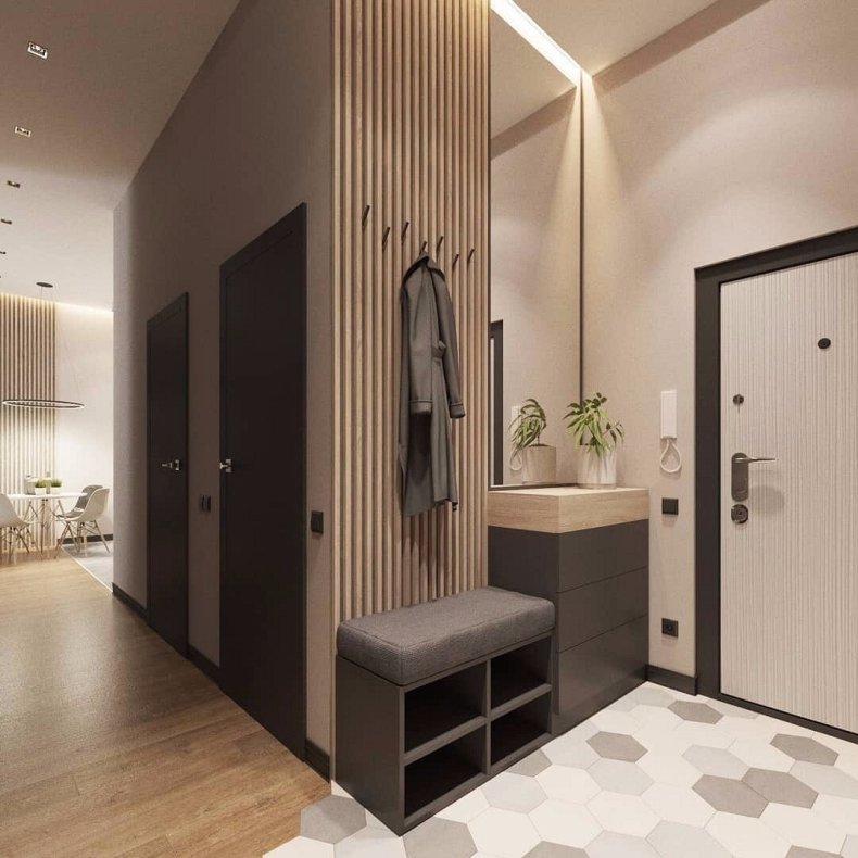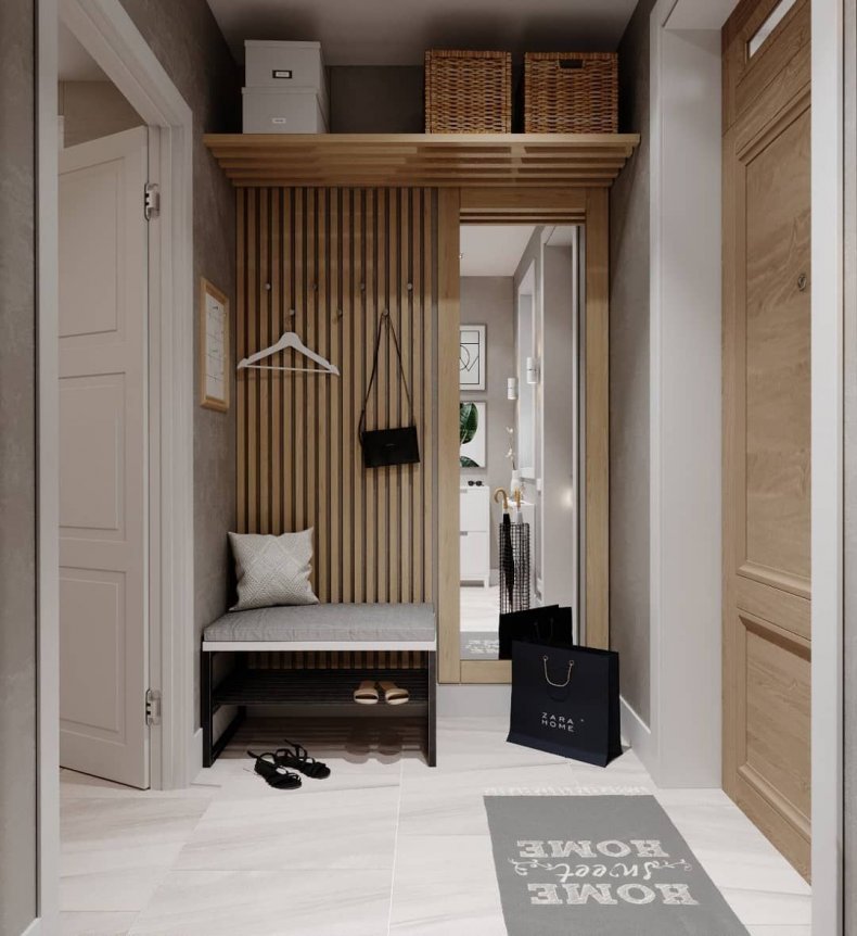 - Если у вас квартира-распашонка, то зону прохода лучше отделить. Это позволит уберечь прочие помещения от попадания в них грязи с улицы.