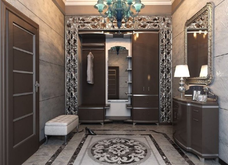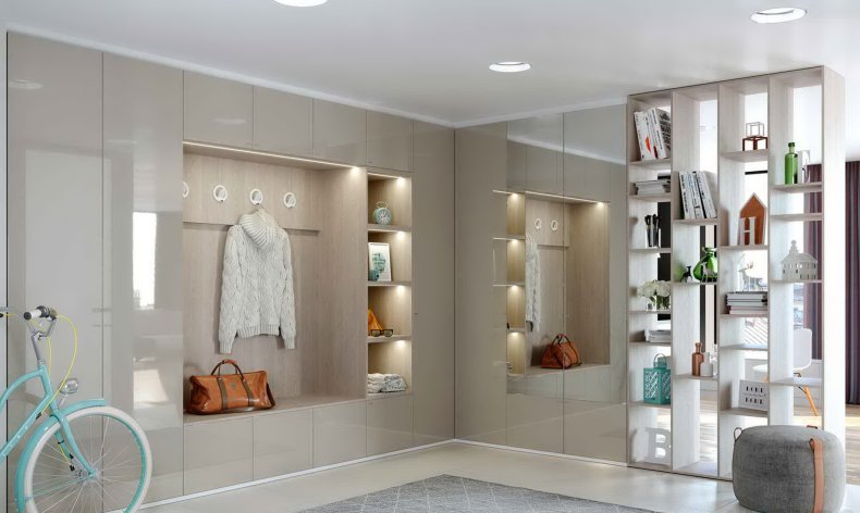 При отсутствии в доме или квартире отдельной комнаты для хранения одежды стоит поместить в прихожую вместительную мебель для нее. Для этого стоит грамотно использовать большое количество пространства.