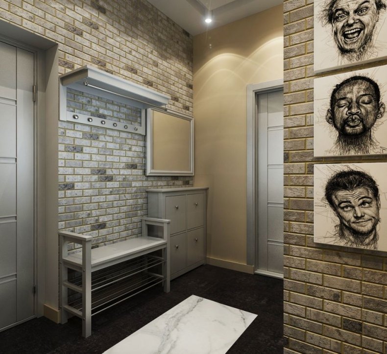 - Стены. Лучше всего отделывать стены в прихожей декоративной штукатуркой или кирпичом. На такой текстуре практически не видны пятна, уход вполне прост, а сами материалы очень прочны и надежны. Еще одно неплохое решение – водостойкие обои, которые можно мыть. Некоторые люди отделывают стены прихожей краской, однако это явление случается редко, ведь материал не совсем подходит для этого помещения.