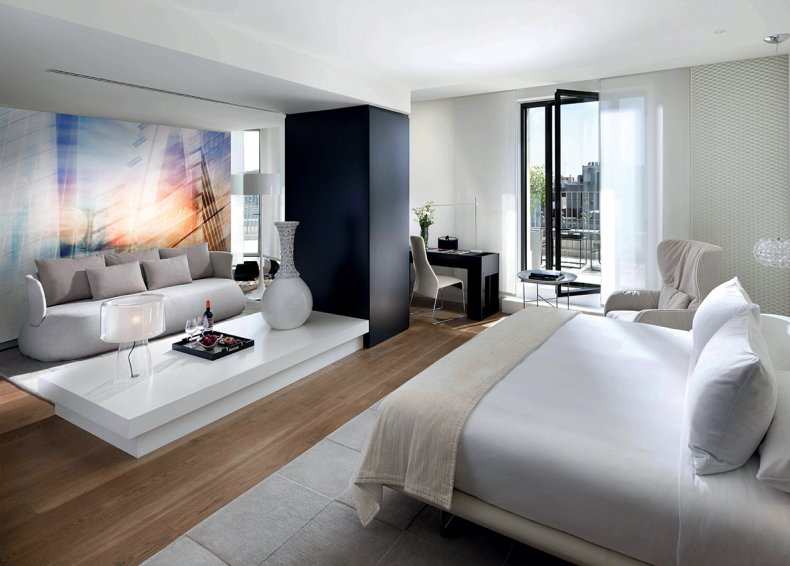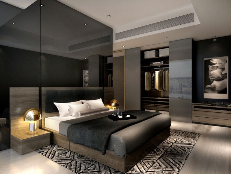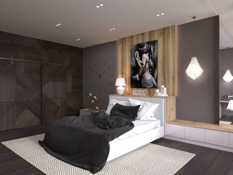 Кровать теперь нужно располагать только в центре комнаты, если нет возможности, то стоит предусмотреть это заранее. Остальная мебель будет располагаться вокруг нее, получается словно островок, вокруг которого есть и другие предметы мебели.