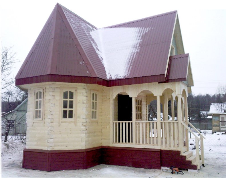 - Разместить такой эркер можно в любой части дома. Строение с несколькими гранями прекрасно впишется в стиль здания из бруса.