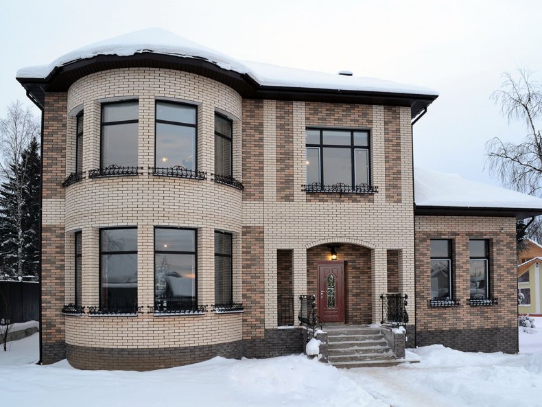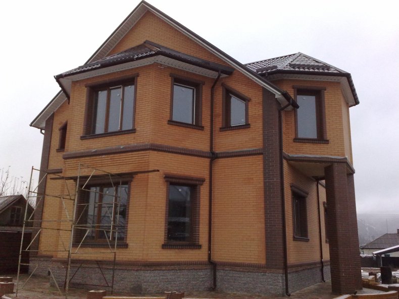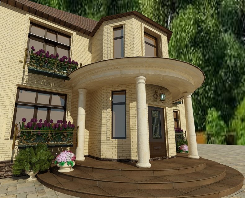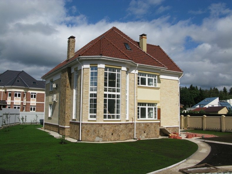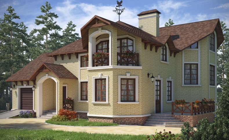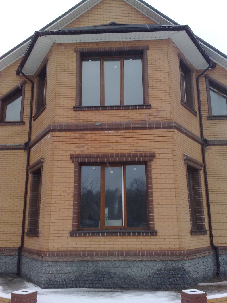 Эркер вы сможете построить как в доме из кирпича, так и в блоковом. Если в коттедже есть мансарда, вы также можете спроектировать конструкцию. Существует вариант объединения в эркер нескольких окон, расположенных на втором этаже.