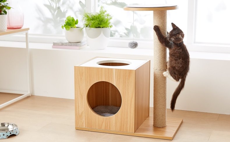 Существует специальная мебель, которая окажется полезной человеку и животному. Например, для владельца гарнитура вмещает функциональные отделы, а для кота — зону отдыха.