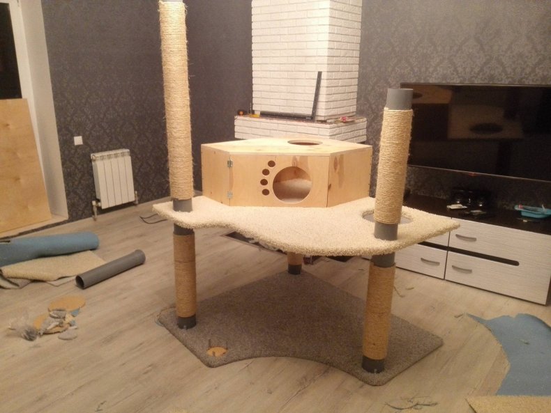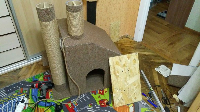 Идею разработали японцы. Создать конструкцию из такого материала возможно без каких-либо трудностей. В итоге котик любого характера останется довольным.