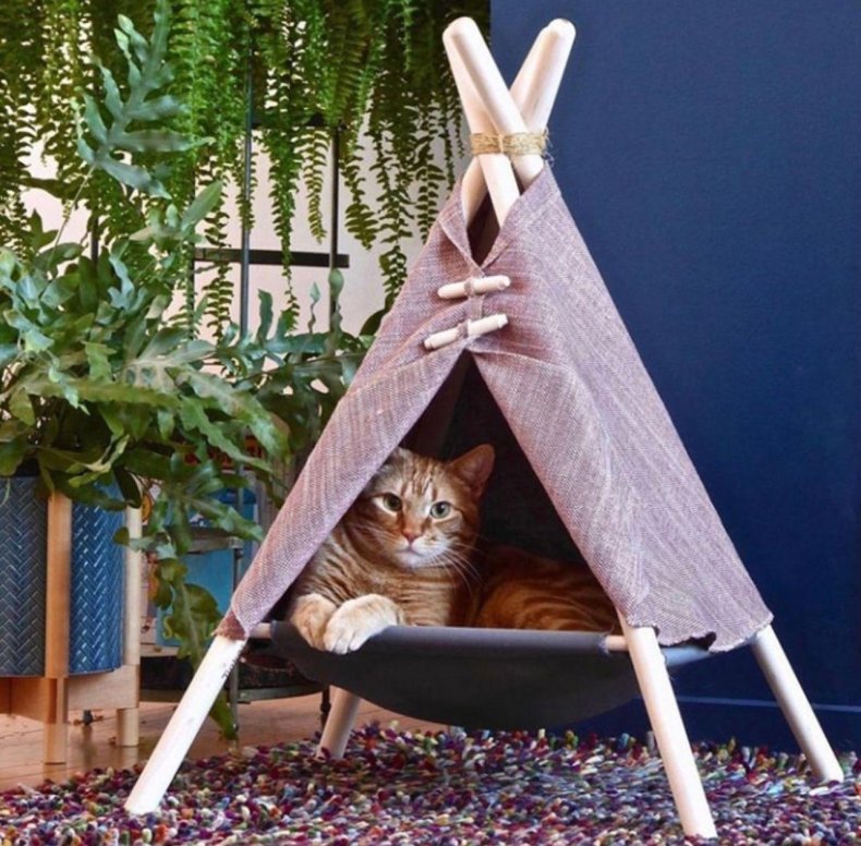 Выберите для пушистика кровать, похожую на вашу, только в миниатюрном размере. Этот творческий подход разнообразит интерьер домашнего помещения.