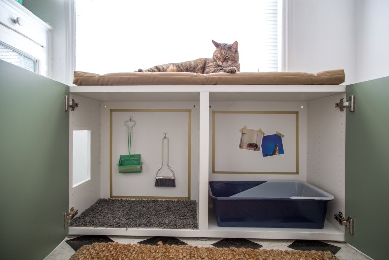 Встроенный вариант, конечно, возможно приобрести в магазине. Стоимость гарнитуры зависит от имеющегося функционала. Поэтому некоторые предпочитают совместить кошачий домик с домашней мебелью, предварительно выделив свободный отсек для потребностей пушистого друга.