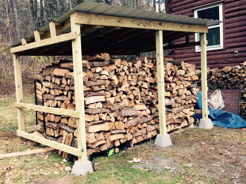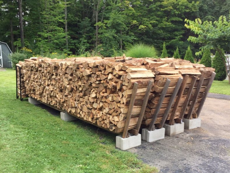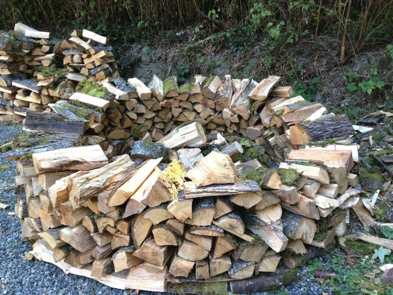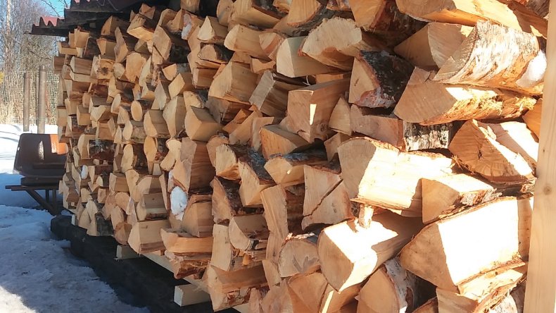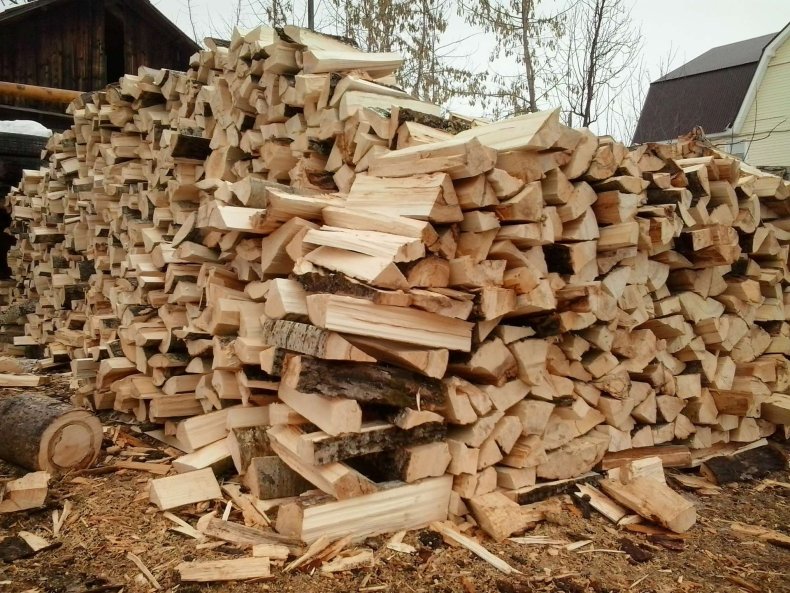 - Также нужно не забыть положить на землю полиэтилен или кору деревьев, чтобы дрова не попортились.