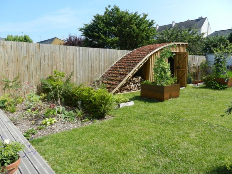 Далее будет рассказан вариант дровницы для дачи. Особенность которой в том, что она отлично вписывается в ландшафт. Дрова защищены от погодных условий (дождь, снег, ветер). Устанавливается на затемненном участке.