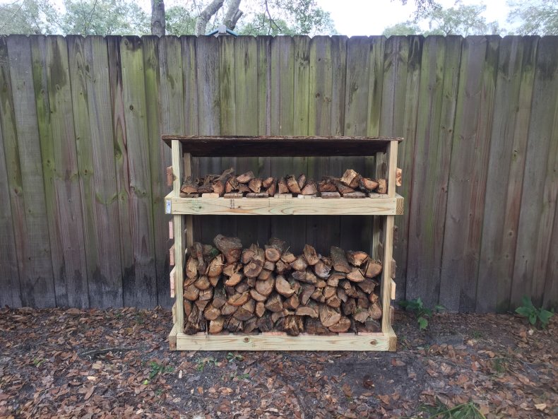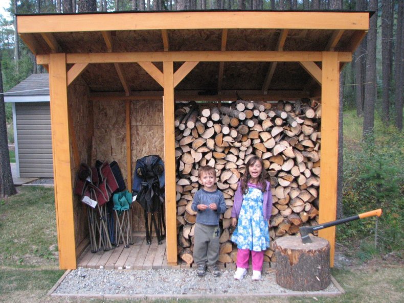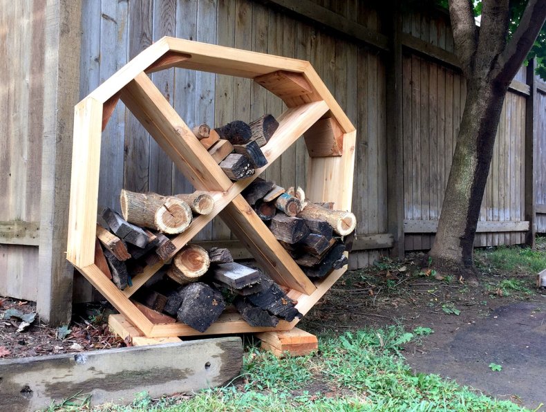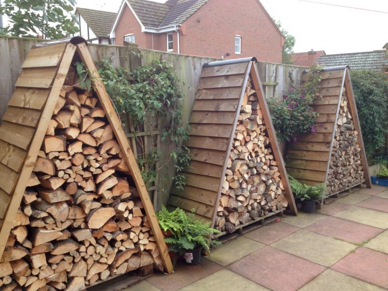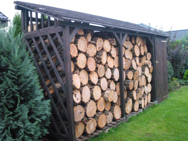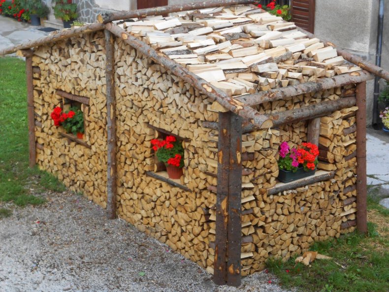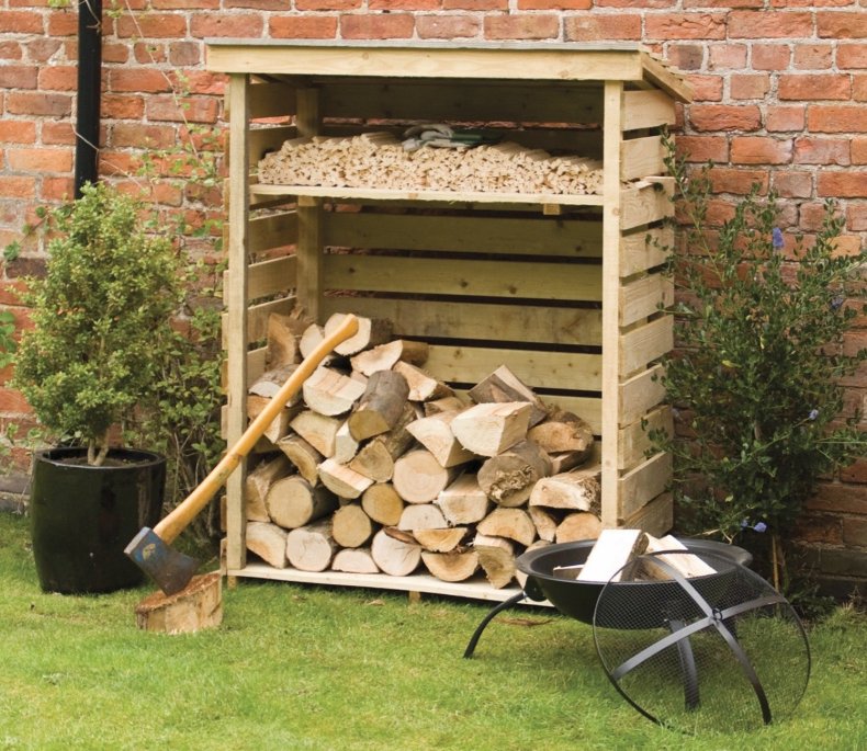 Поленья в дровнице можно расположить тремя способами. Это по кругу, штабелем и на опорной системе из кольев. Каждый из них изготавливается собственноручно.
