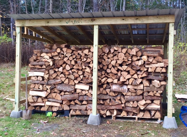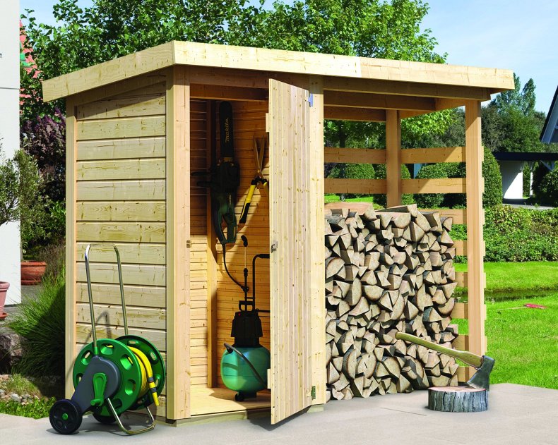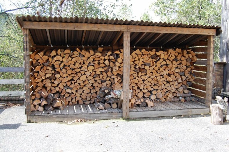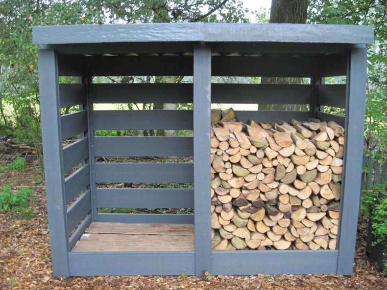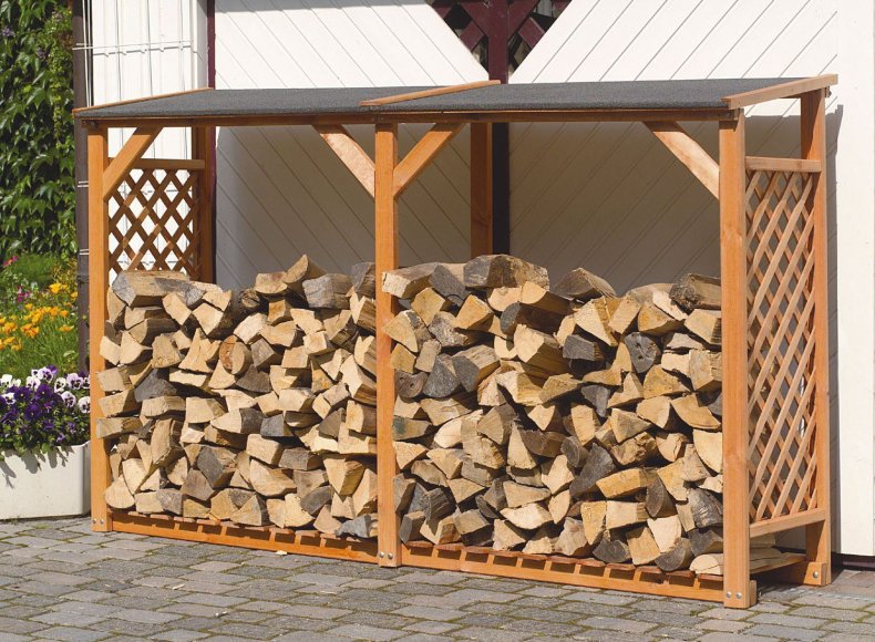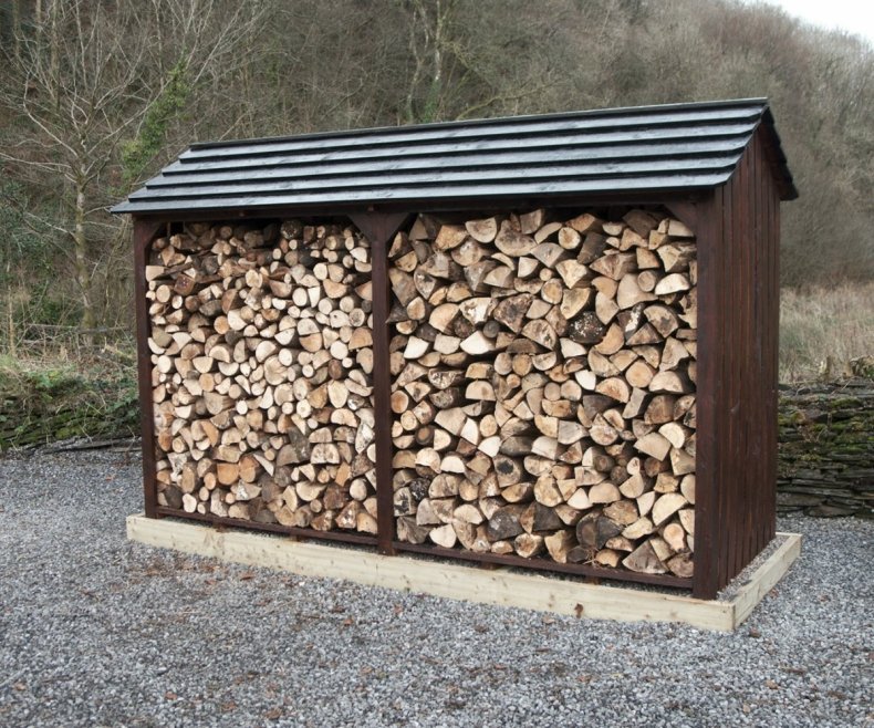 Для дров применяется настил из полиэтилена, бетона или дерева. Также можно использовать шифер, металлопрофильный лист. Поленья располагаются под уклоном. Это способствует не нарушению системы хранения.
