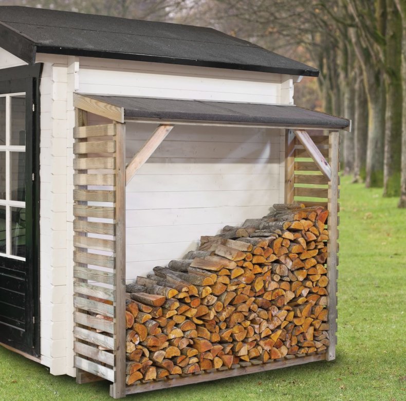 - Для которого используется деревянный брус. Из которого делается невысокая дровница, обычно в два этажа, располагая дрова под уклоном.