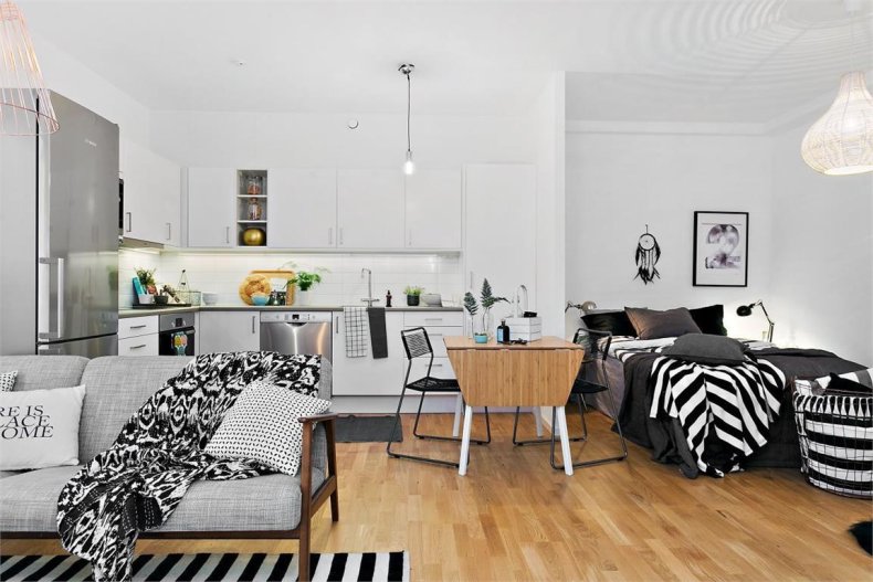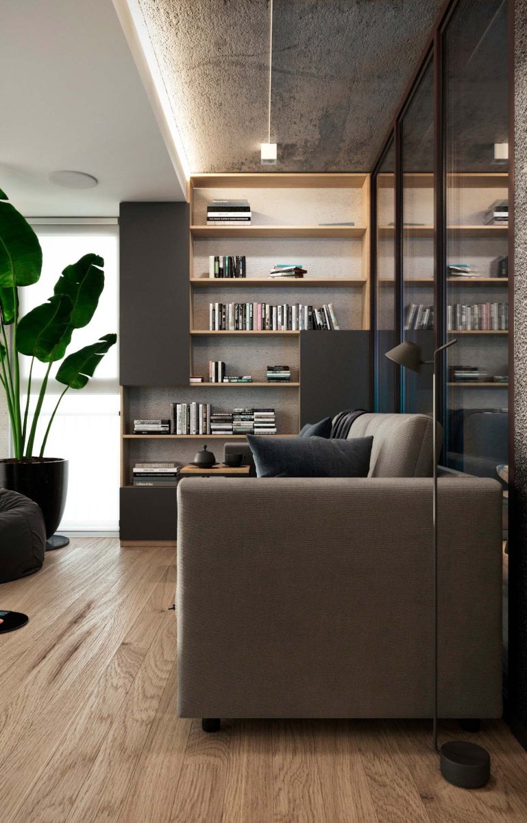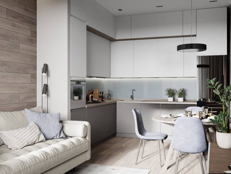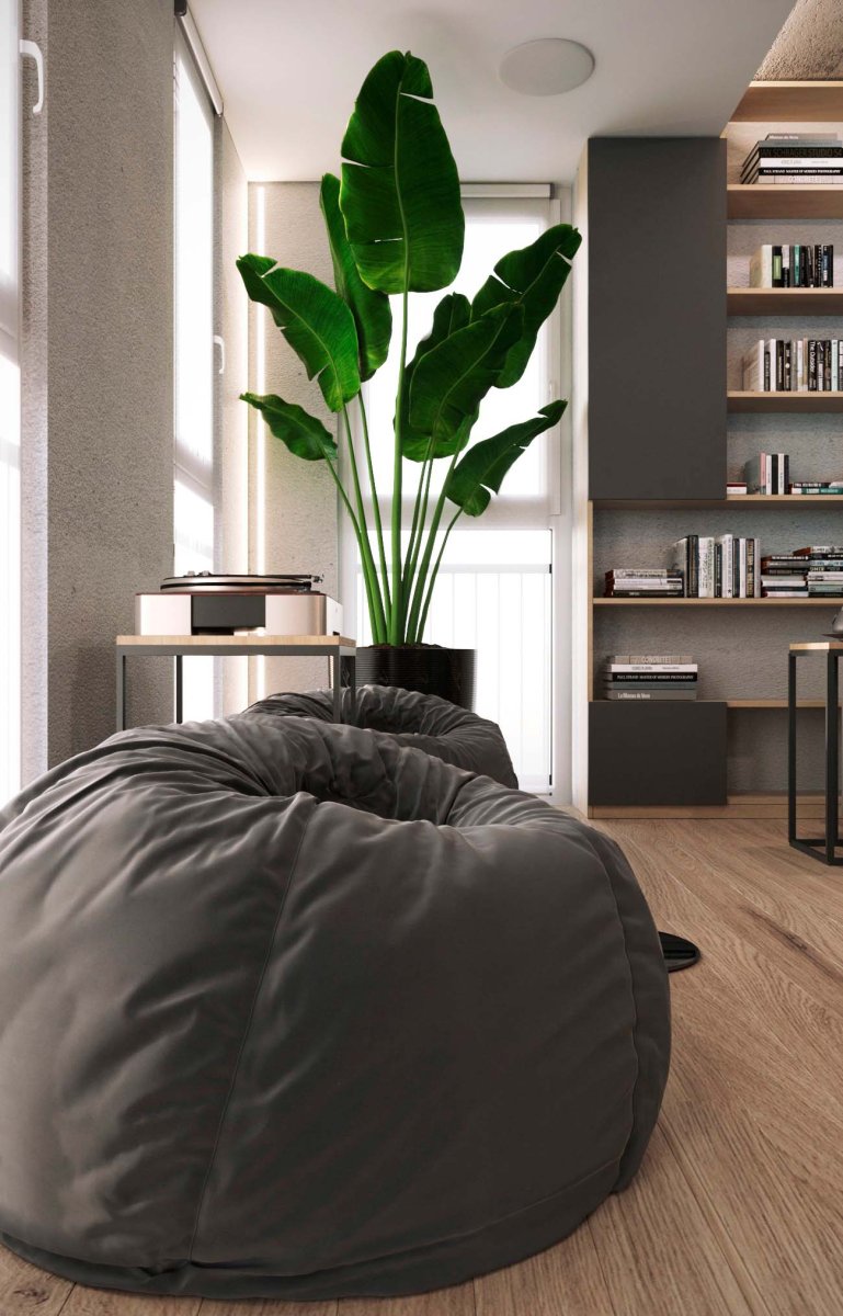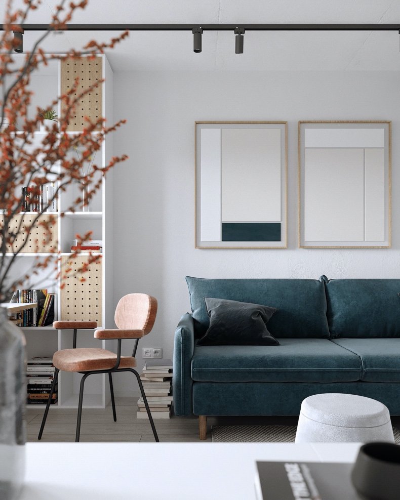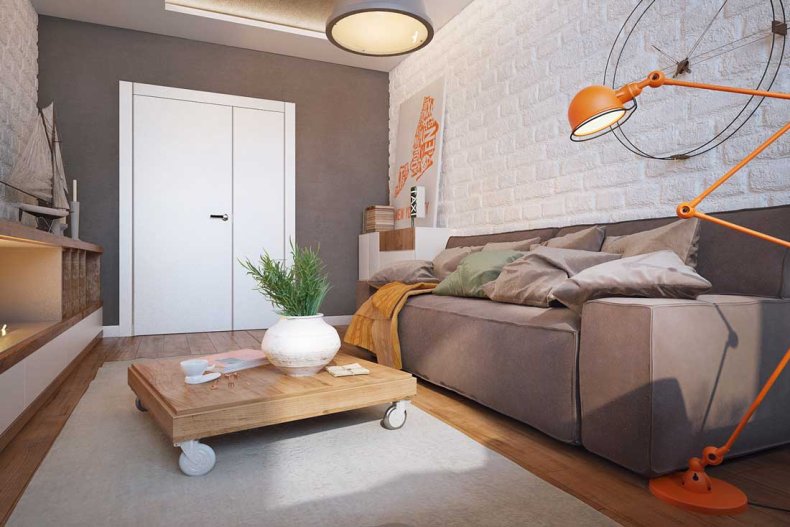 Подойдет в пространство и минимализм. Его лаконичная обстановка поможет не загромоздить пространство ненужными вещами.
