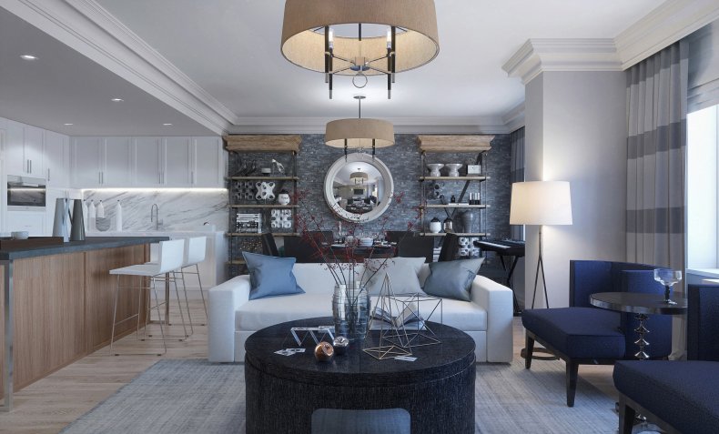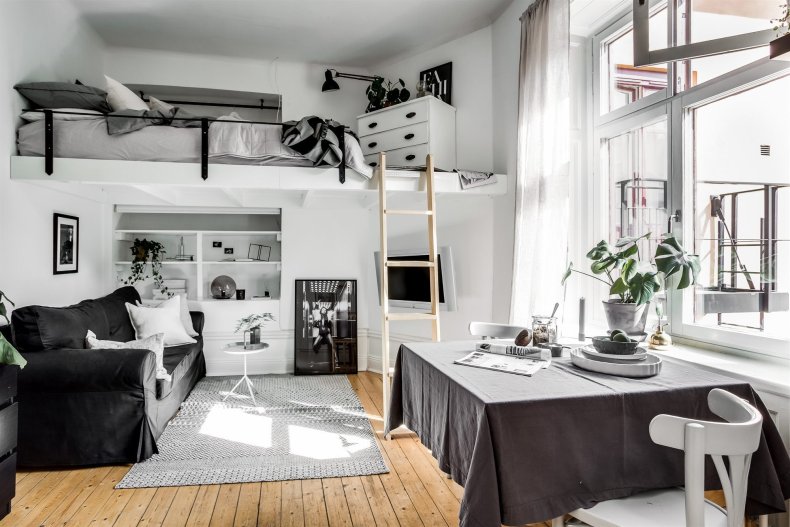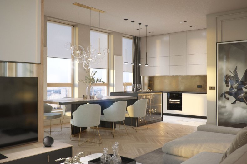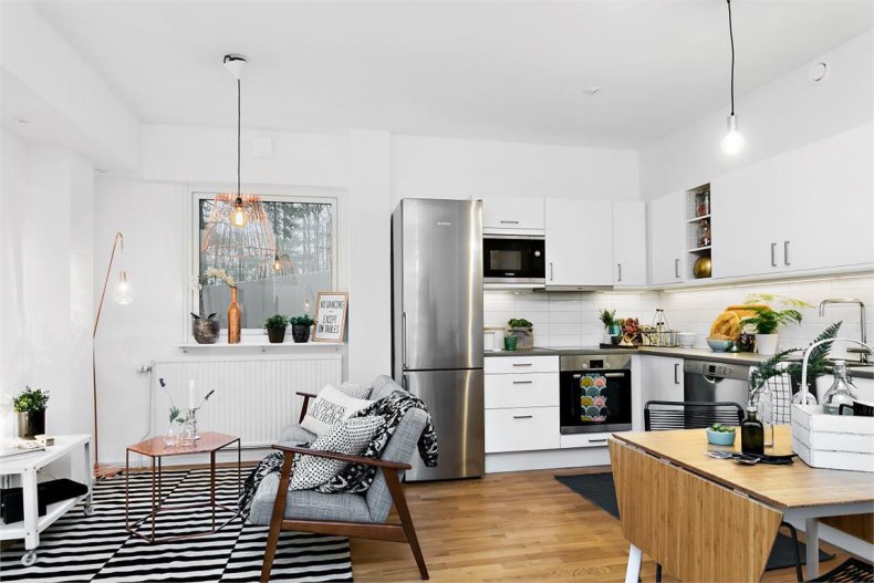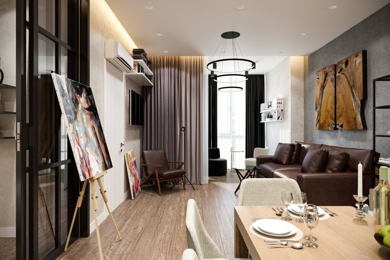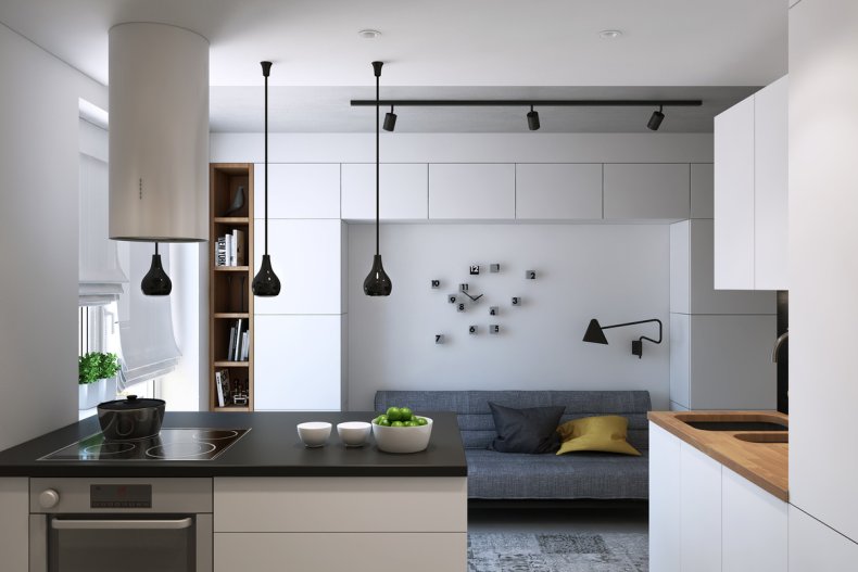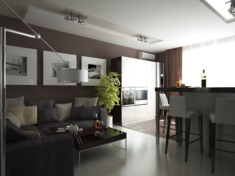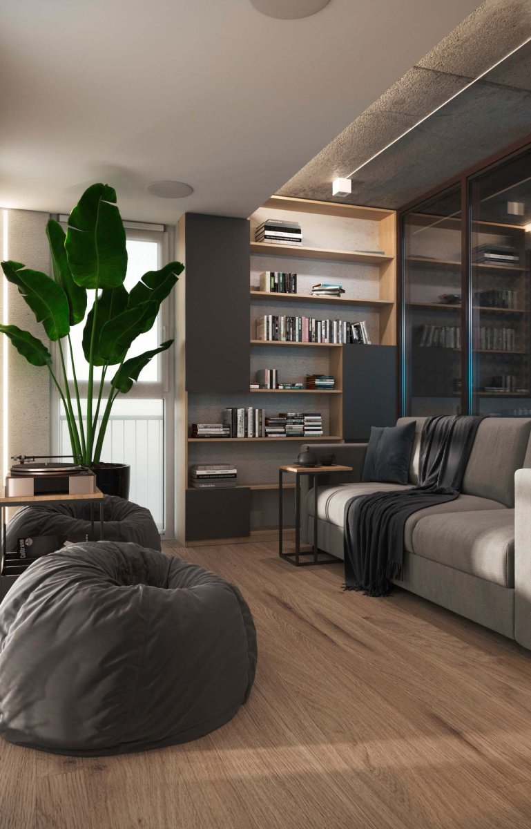 Подойдет в пространство и минимализм. Его лаконичная обстановка поможет не загромоздить пространство ненужными вещами.