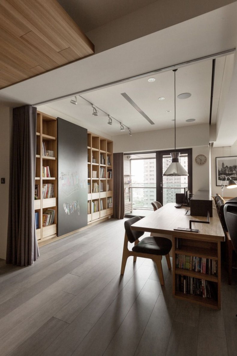 - Если стеллаж не ваш вариант и хочется чего-то более радикального, то воспользуйтесь перегородками. Конечно, от шума они не защитят, но пространство разграничить помогут. Перегородки создадут чувство обособленного пространства, даже если они расположены не под потолок;
