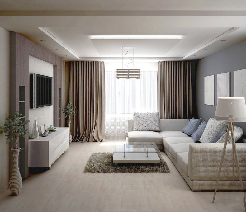 Гостиная в квартире может быть как отдельно стоящей комнатой, так и проходной. От этого зависит расположение мебели и особенности планировки.