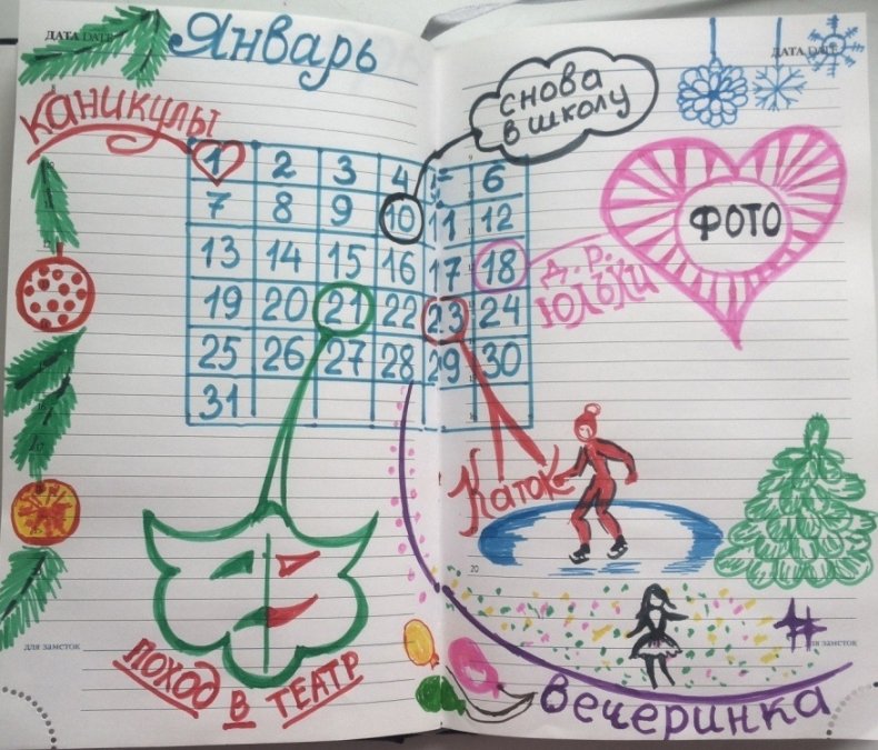 Художества в ЛД и применение креативных идей при его оформлении не только добавят интереса и эмоций при просмотре дневника спустя несколько лет, но и помогут в развитии творческого мышления и художественных навыков. Ниже будут перечислены несколько идей для оформления разворотов в личном дневнике.